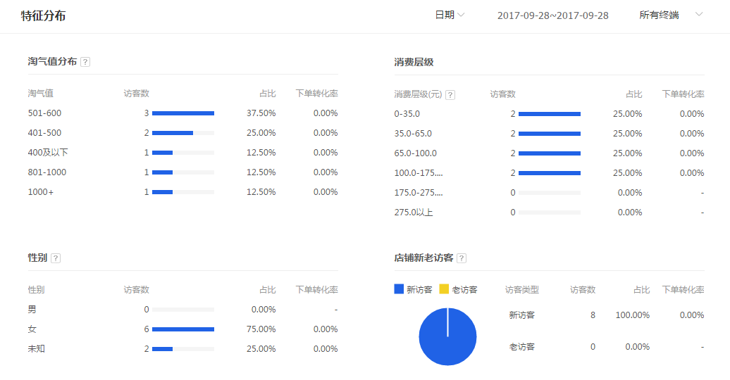 那么店铺也是有标签的,而店铺的标签,主要就是根据店铺的一个客户人群来去打上去的。简单点的说就是你的客户人群性别、年龄的占比以及地理位置和消费者的消费层级还有价格带,包括我们卖的什么产品。而这个说带给我们的差别就是同样的产品,别人可能每天销售到100多笔,但是有的却只能成交几十笔,那么这个差距就出来了。所以说整个店铺的标签非常重要的而且相对来说也是精准很多的。而淘宝所给你推送的这些流量都是根据你的店铺标签来的,所以,我们就必须去强化我们的店铺标签,让她变得更加精准一些。这样淘宝给我们的福气流量也会更加的精准。然后就好比一家店铺的风格是比较统一的,而他的风格主要定位于清新甜美,还会带有一些原创的设计,去吸引到买家来去进行购买,因为这些买家他们的喜爱度、审美、年龄、消费层级以及性别都是一致的。那么淘宝给我们带来的流量就是非常精准。我在这个时候我们的转化也肯定是非常好的。